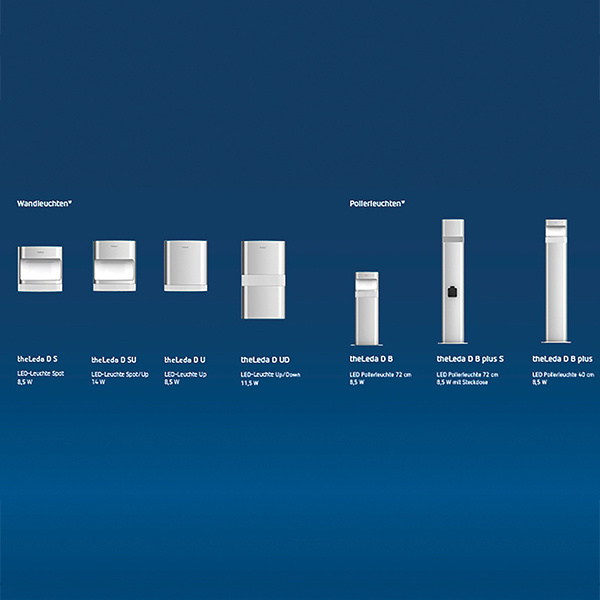 Das hochwertige, massive Aluminiumgehäuse der theLeda D LED-Leuchten macht u.a. an Hausfassaden eine besonders gute Figur und bietet vielfältige Optionen für individuelles Lichtdesign oder zur Akzentbeleuchtung etwa an Einfamilienhäusern, in Hotel- und Parkanlagen oder Seniorenheimen. Aktuell sieben Modellvarianten mit unterschiedlichem Lichtaustritt und verschiedenen Lichtleistungen bieten Lösungen für jeden Anwendungsfall und sorgen für ein einheitliches Erscheinungsbild im Außenbereich. Darüber hinaus ist theLeda D auch in sechs Varianten ohne Bewegungsmelder erhältlich.